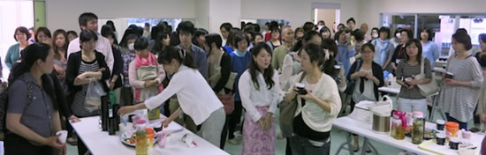 会が終わると、利用者の皆さんは参加者にのぞみハーブティー入りの