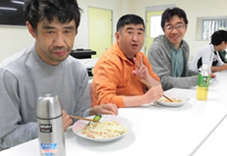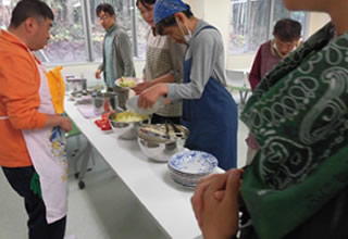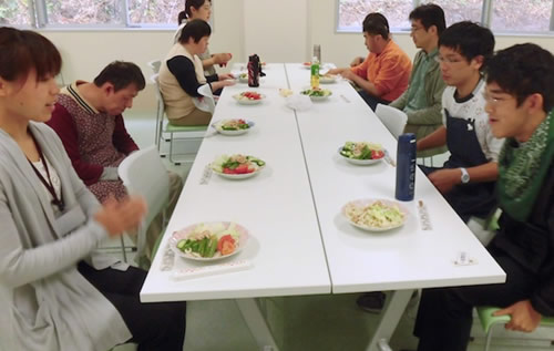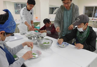 調理する班と買い出しをする班とに分かれ、手際よく調理を進めることができました。 では、みんなで作ったサラダうどん、いただきます!
