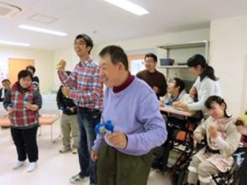 今回の音楽療法は、初めから楽器がいっぱい、参加者も大勢で、盛り上がりました!