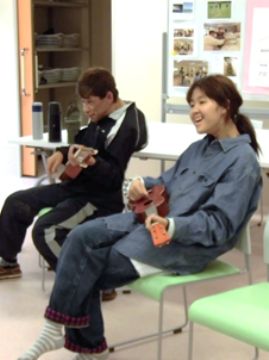 それが終わると、ギターやウクレレなどの弦楽器を奏でました。ちょっと難しいかな…? |