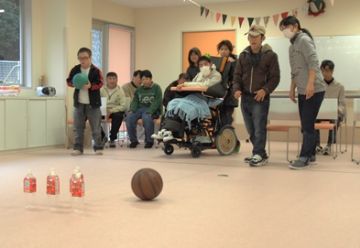 ピンが倒れる音が響くとともに、利用者が喜びの声をあげたり、飛び跳ねたり… |