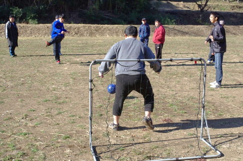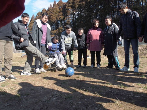 利用者たちも、ここぞとばかり思い切り蹴りこんで、ボールを飛ばします。