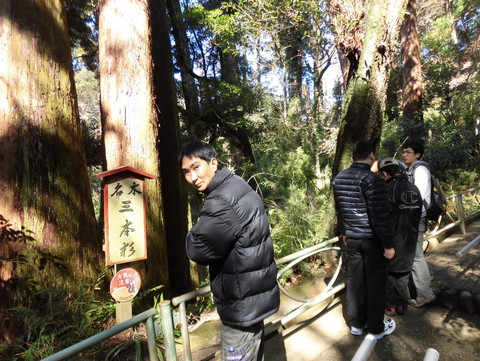 樹齢800年といわれる三本杉に到着です。