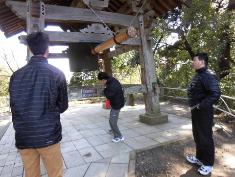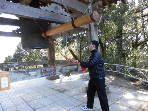 景色のよい場所で休憩してから、境内の鐘をつかせてもらいました。