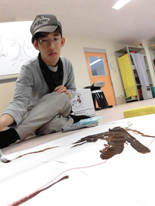まずは、絵の具で大きな紙に幹と枝を描きます。 |