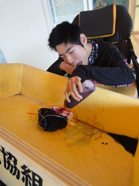 半日置いてヒモをほどき、洗って、色が落ちない様に加工をすれば出来上がりです♪