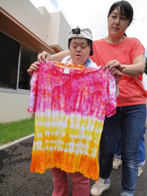 ヒモをほどいた瞬間のわくわくがなんとも言えませんでした。みんな自分のTシャツを見て、満足気に笑みを浮かべていました。