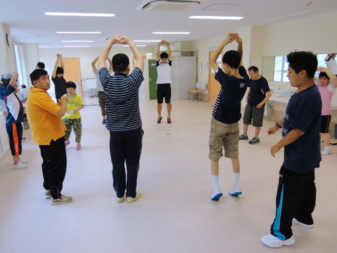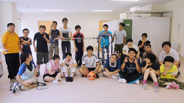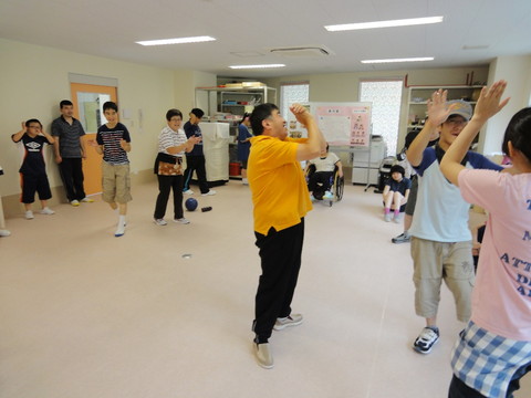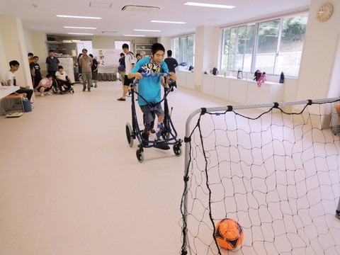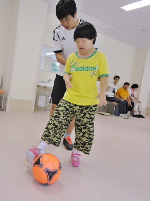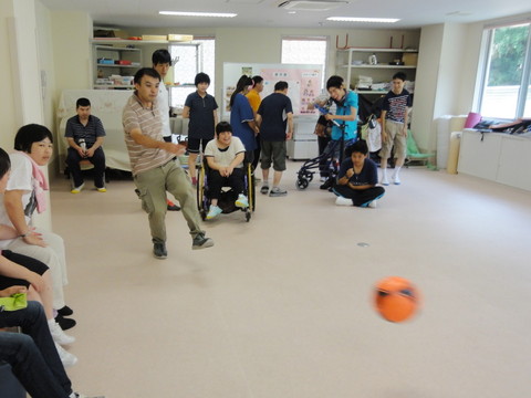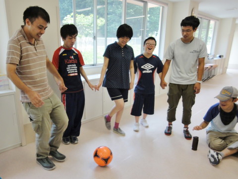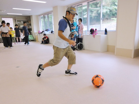 7月31日、満山さんとサッカーをしました。暑いので、今回は屋内です! |