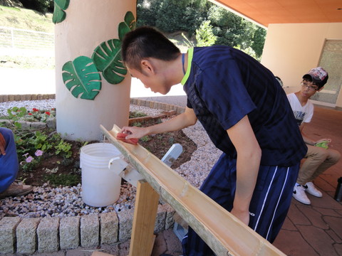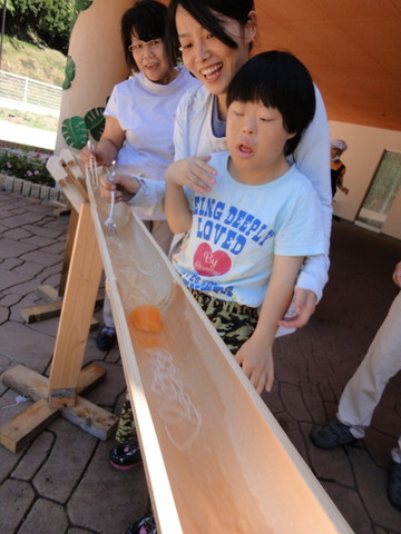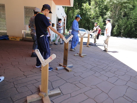 まずはのぞみ牧場学園からお借りしてきた流しそうめんキットを男子チームで組み立てます。