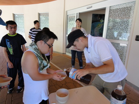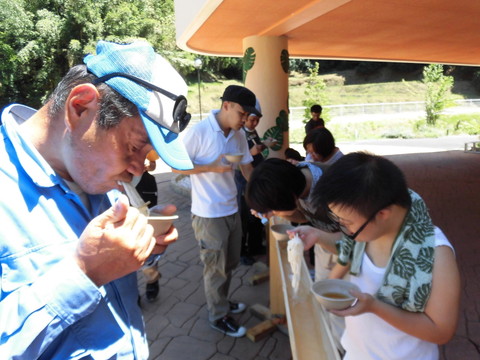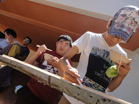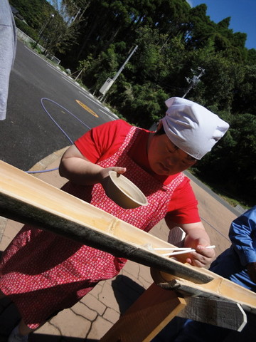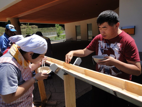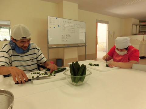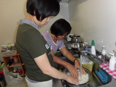 麺を洗ったり、キュウリを切って漬物も作りました。 |