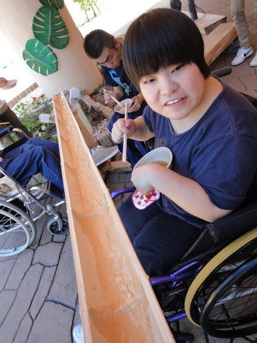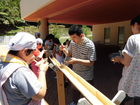 そうめんだけでなく、うどん、中華麺、こんにゃく麺、ときどきウズラの卵、ミニトマト、シュウマイも流してみよう!