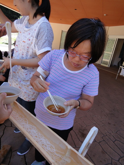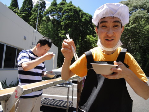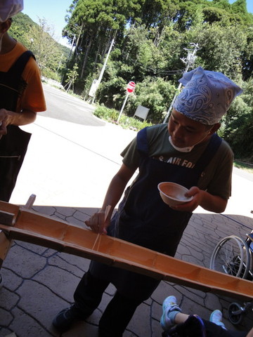 麺つゆをお椀に入れて、さ〜 流すぞ! |