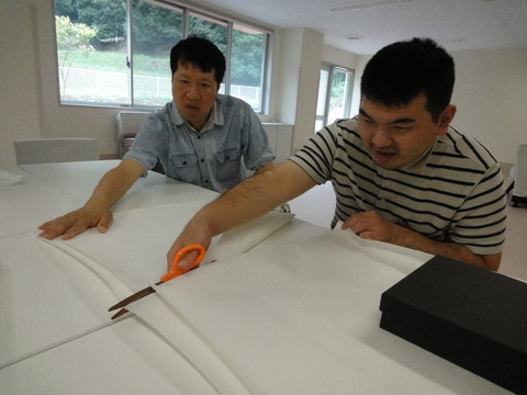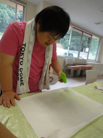 にじみ絵は、保護者の方から頂いた障子紙を切ることからスタートです。