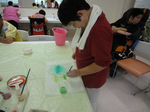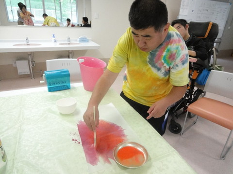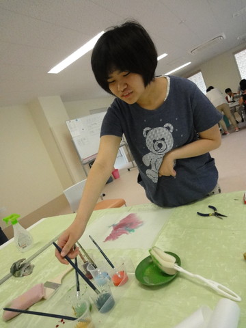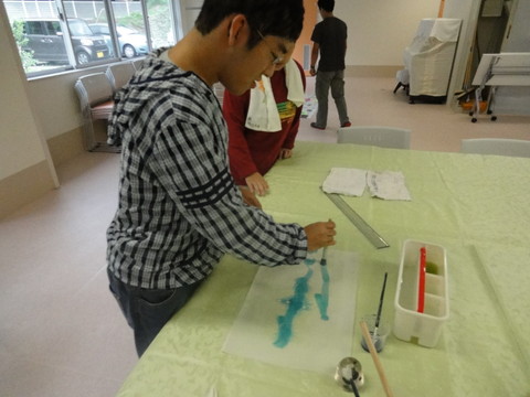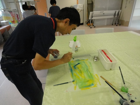 皆さん思い思いの色を白い紙にのせていました。 |