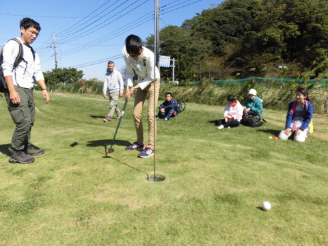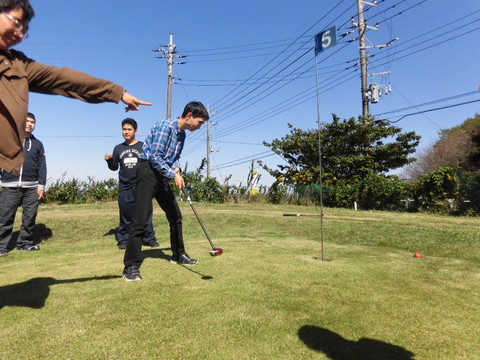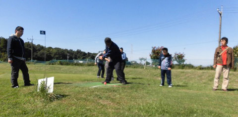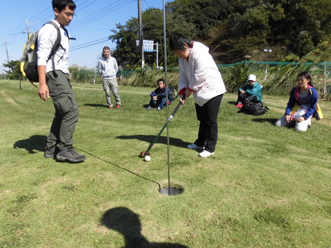 腕に覚えのあるTさんがカップインを決めると、みんなが「おおー」と唸りながら拍手しました。