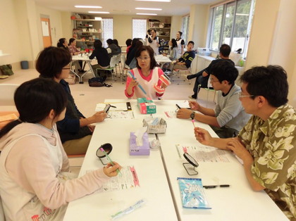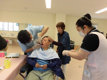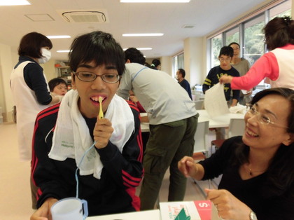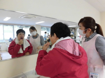 スタッフも、お互いに歯を磨きあうなどして、歯磨きの適切な介助について理解を深めました。