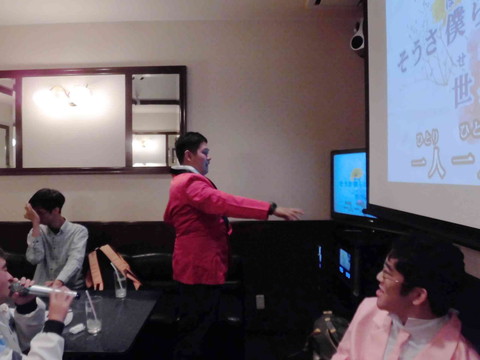 一部屋では利用者が入りきらないので、3つの部屋に分かれて歌いました。 こちらの部屋ではアニメやテレビ番組の歌が人気でした。