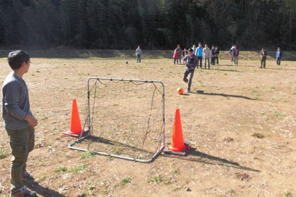 身体がほぐれてきたところで、グラウンドでシュート練習!