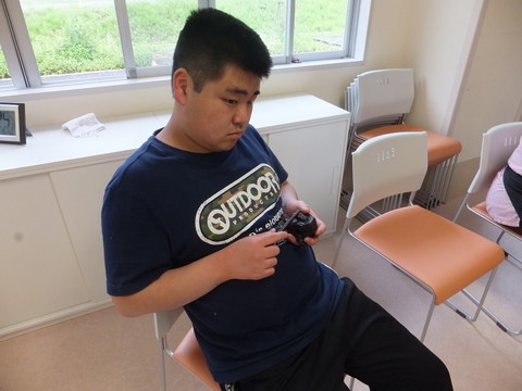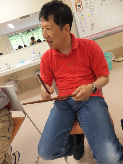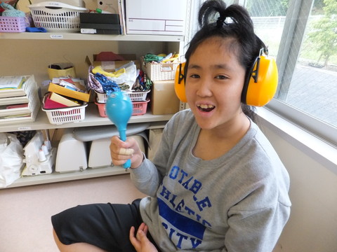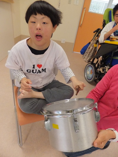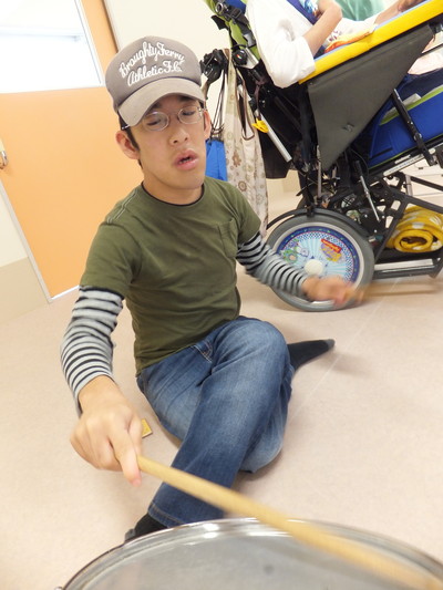 のぞみ牧場学園の藤原先生による音楽療法がありました! まずは、ドラムスティックをたたいて、挨拶から!