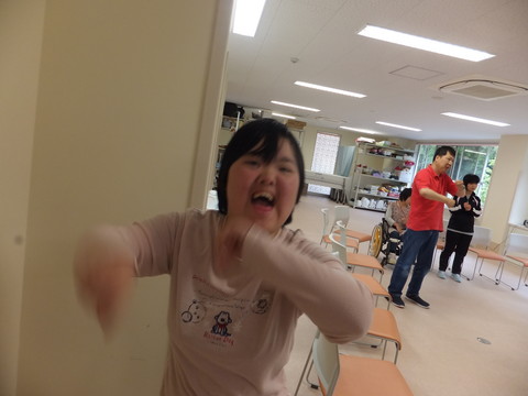 リズムに合わせて踊りましょう! みんな、いきいきとしています!!