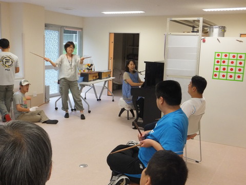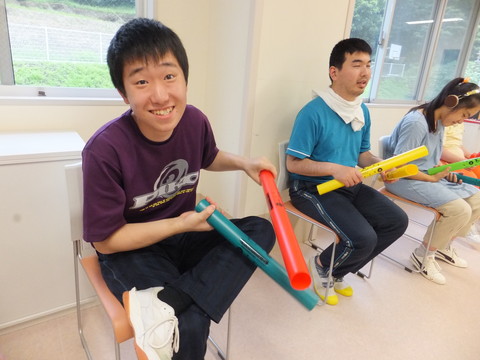 その手作り楽器で、みんなで演奏してみましょう。