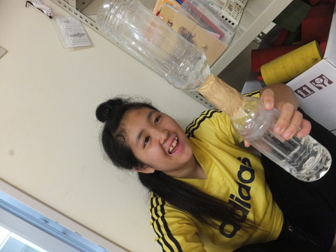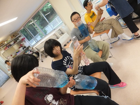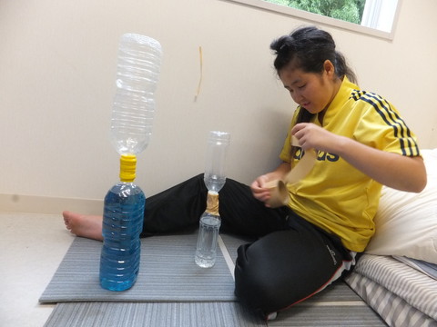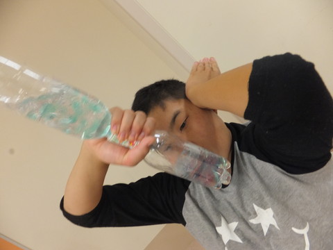 別室で、先生持参の手作り楽器を真似して作り、