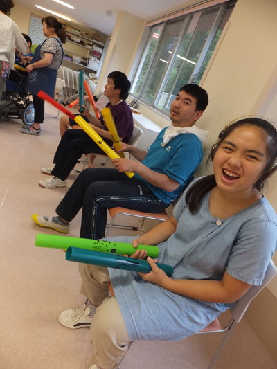 今回の音楽療法では、藤原先生がいつもと違った楽器を いくつか持ってきてくださいました。