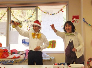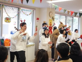 さぁ楽しい会の始まり。先ずは「赤鼻のトナカイ」「サンタが街にやってきた」