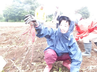 次から次に出てくるお芋。まさに芋づる式にどんどん見つかります!良い笑顔で楽しそうですね!