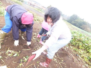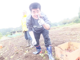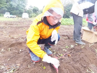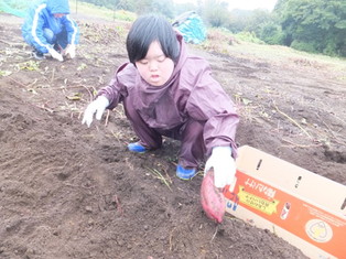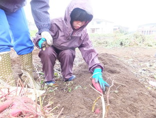 ときおり小雨が降りましたが、合羽を着てみんな一所懸命に芋を探しています。