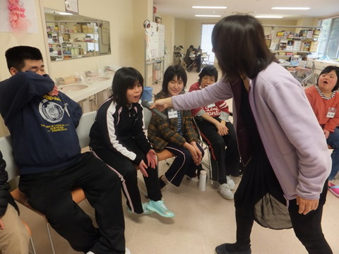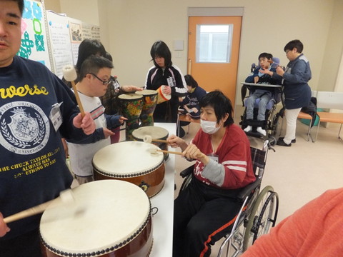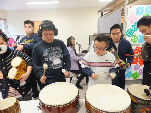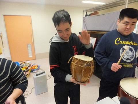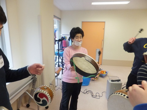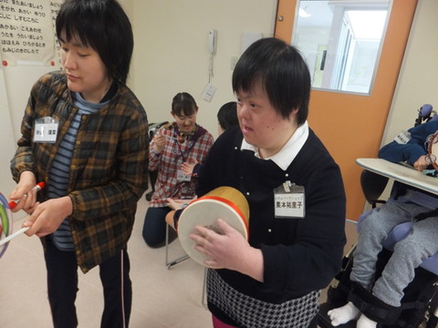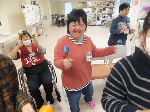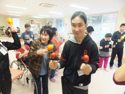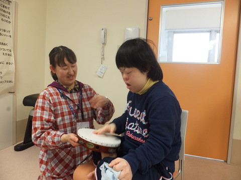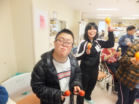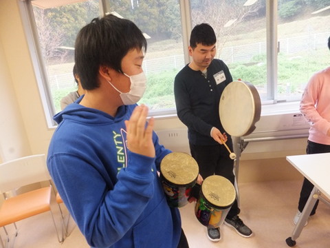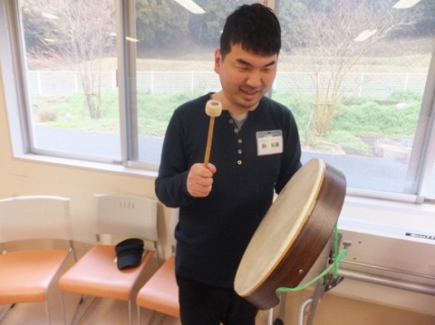 今月ものぞみ牧場学園から藤原先生にお越しいただいて、音楽療法を行いました。