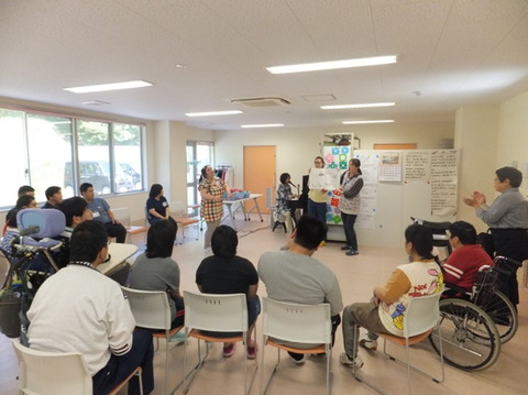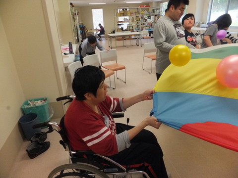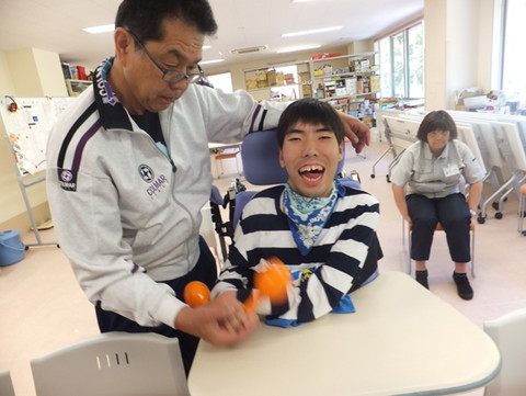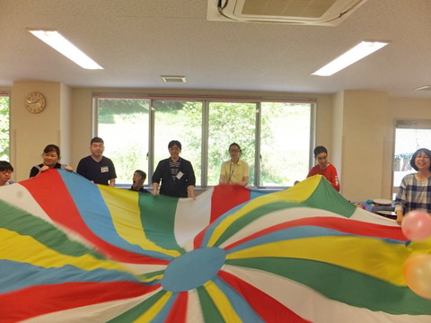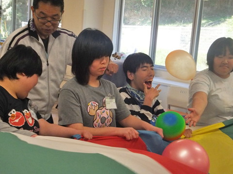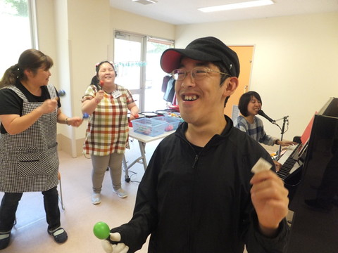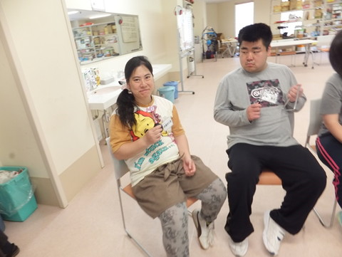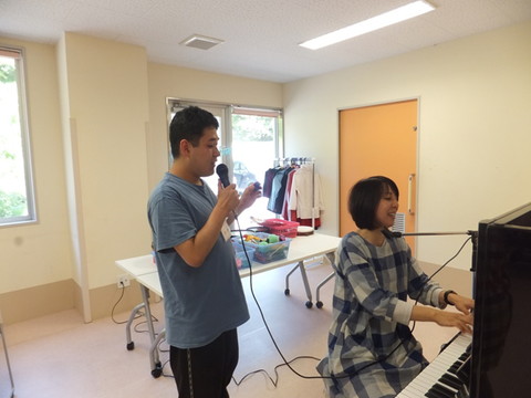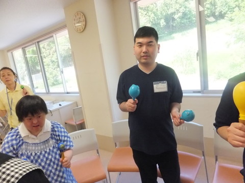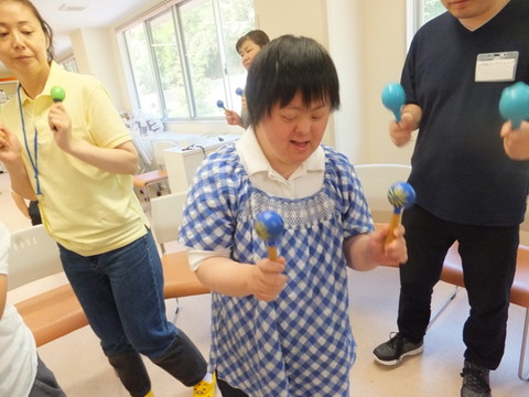 今月ものぞみ牧場学園から藤原先生にお越しいただいて、音楽療法を行いました。