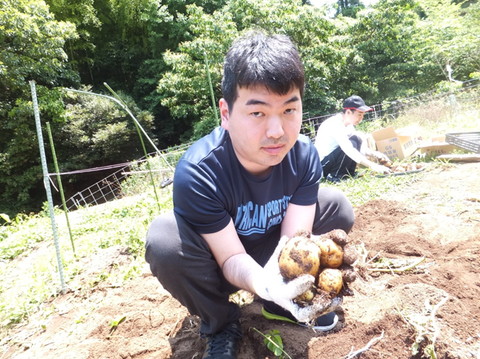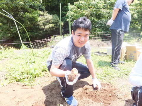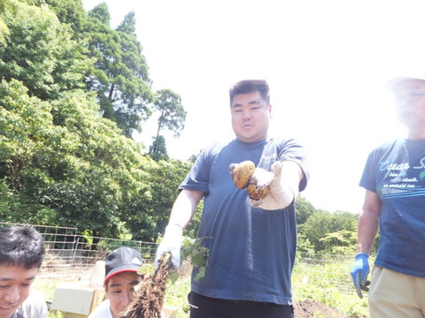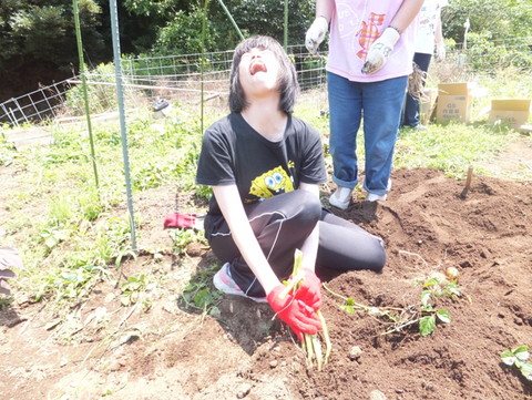 今日は梅雨の晴れ間をいかして、ワークショップの畑で栽培しているじゃがいもの収穫を行いました! |