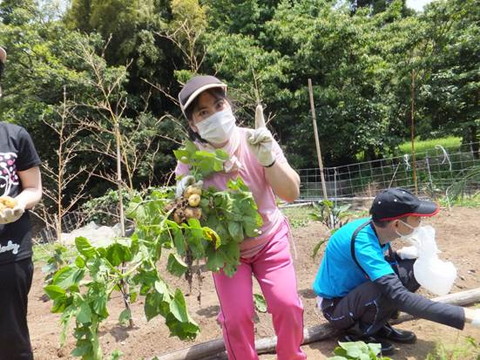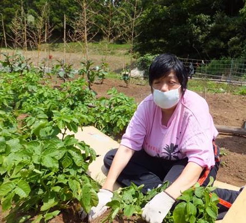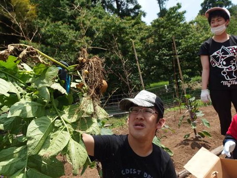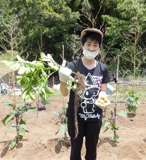 畑では、ジャガイモ以外にも、ナス、キュウリ、トマト、珍しいビーツ、