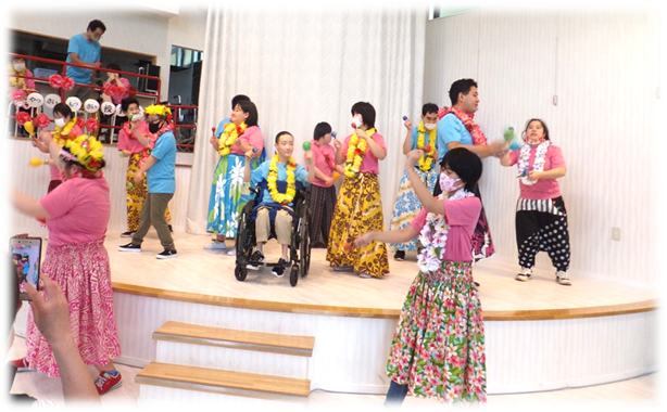 利用者さんの素敵で元気な踊りが、素晴らしかったです♪ 最後に保護者の皆さんも一緒に、“やっさいもっさい”を踊り、楽しい時間を過ごすことが出来ました!