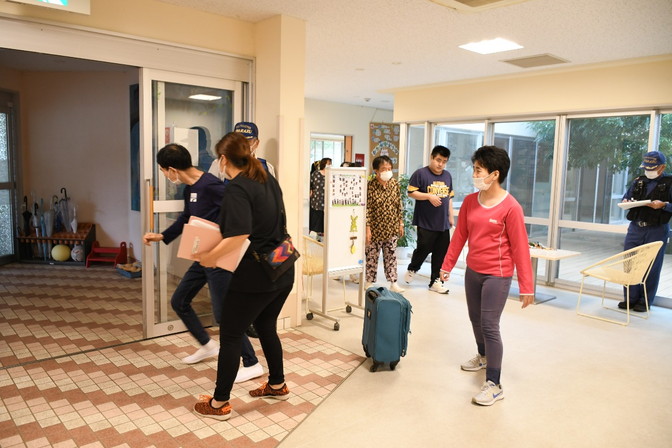 利用者さん、とても落ち着いて避難しています。