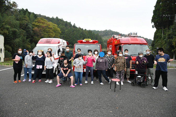 今回は3台来てくれました!皆さん・スタッフも大興奮でした♪ 火災・地震・台風などの災害に備えて、私たちも日々、気をつけていこうと思っています!