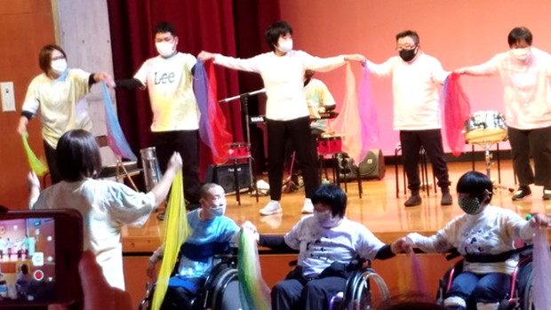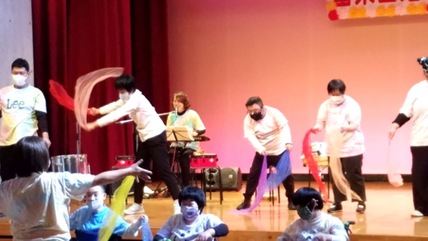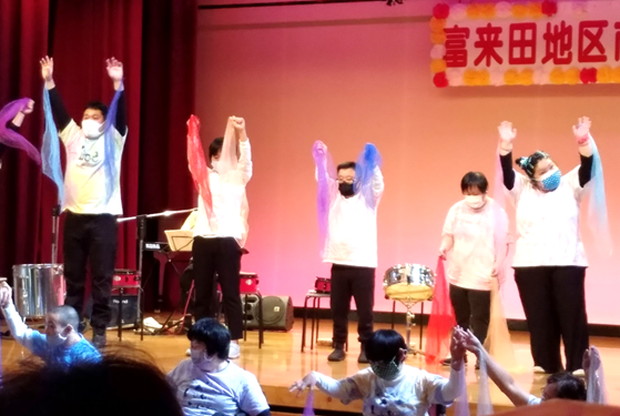 のぞみ牧場学園の音楽療法士 藤原先生とのぞみワークショップの利用者さんの有志で結成された今回の参加者! スタッフ川上さんを筆頭にたくさん練習を重ね、当日は素晴らしい演奏とダンスを披露することが出来ました。 またご協力頂いた、保護者の皆様、ありがとうございました!
