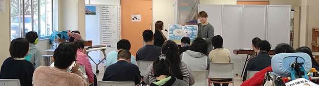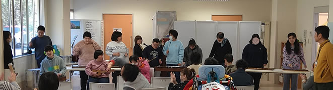 のぞみワークショップで週に1回行われる川上さんの音楽療法をみなさんとても楽しみにしています |