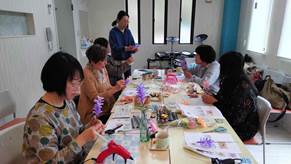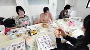 初めてグルーガンを使い、熱い!!と言いながらも、みんなでワイワイおしゃべりをしながら、お茶をしながら楽しい時間を過ごしました。のぞみ先生、貴重なお時間をありがとうございました。 |